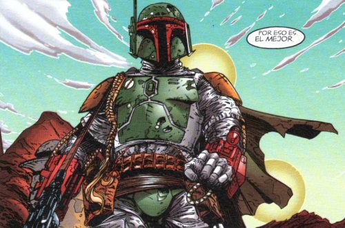 De nuevo en el espacio, Bossk y otros cazarrecompensas consiguen abordar la nave de Fett, pero éste consigue salir ileso y desembarca finalmente en Tatooine, donde se las ingenia para llegar hasta Jabba sin que sus colegas consigan interponerse. Aparte de eso, solo puedo añadir que su representante sin duda sabe lo que se hace, porque siempre le consigue las mejores viñetas.