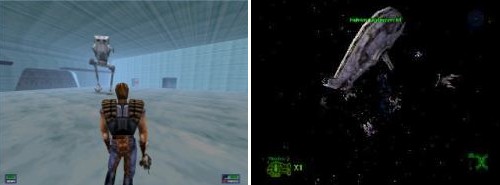 Dejando ese tema de lado, el juego alterna pantallas tipo «Dark Forces» con pantallas de navecitas, entre estas últimas, la famosa batalla de Hoth, que LucasArts se apaña para introducir en todos los juegos de La Guerra de las Galaxias que produce. Aparte del Snowspeeder, también podemos conducir una moto voladora de esas que salían en «El retorno del Jedi» y pilotar la nave personal de Rendar, el Jinete del Espacio.